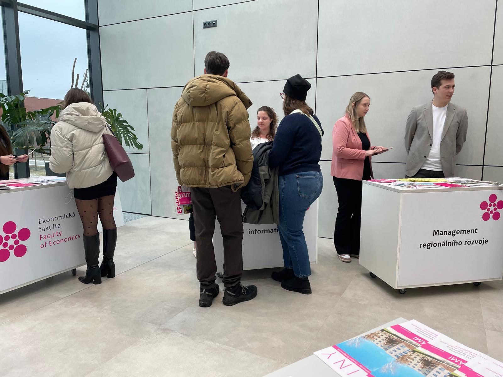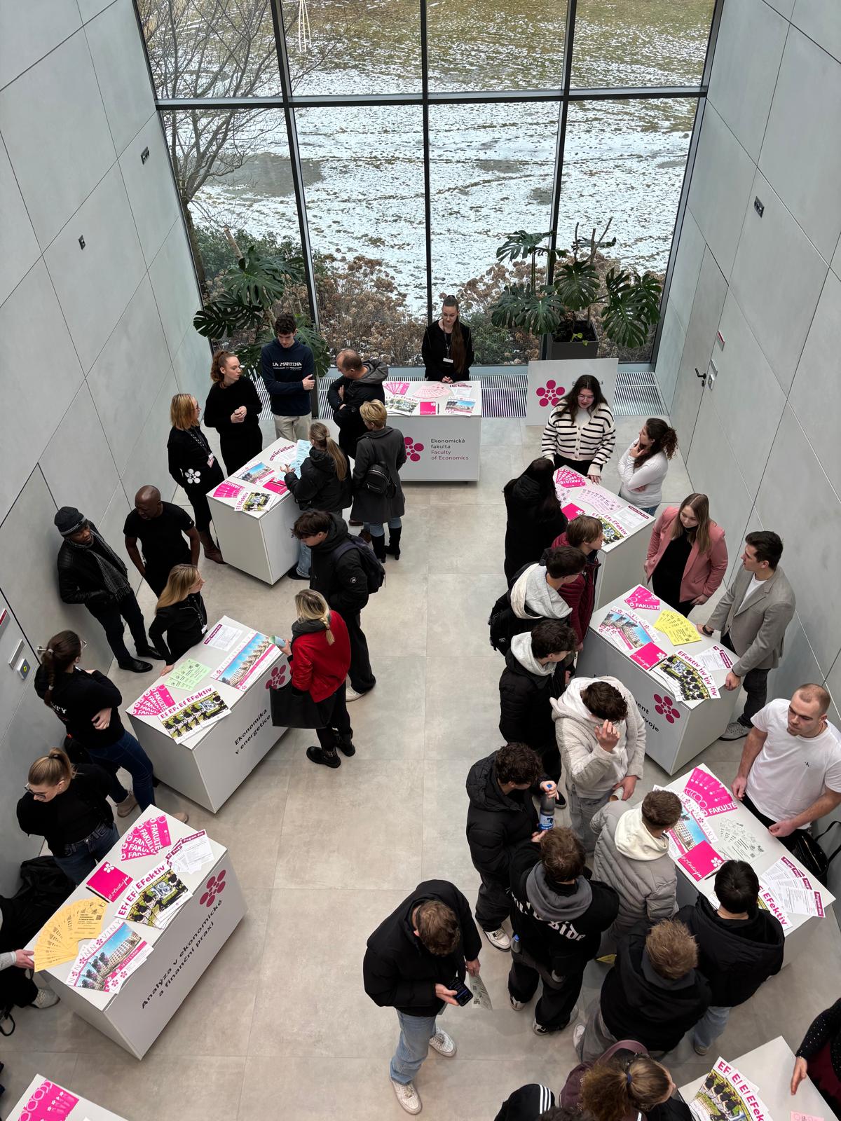 Den otevřených dveří Ekonomické fakulty JU letos znovu potvrdil, že o studium ekonomie, managementu a podnikání je mezi uchazeči skutečný zájem. Fakultu navštívili středoškoláci nejen z Jihočeského kraje, ale i z dalších regionů a partnerských středních škol, často v doprovodu rodičů, a aktivně se zajímali nejen o přijímací řízení, ale i o samotný průběh studia a uplatnění absolventů.