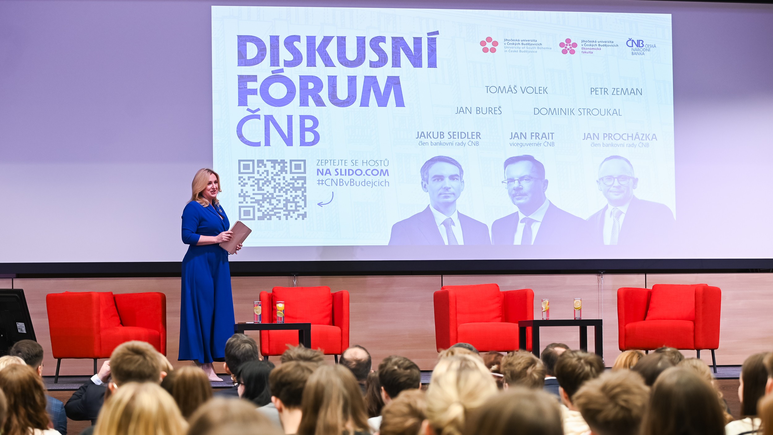 V úterý 25. listopadu ožila nově zrekonstruovaná Aula Jihočeské univerzity mimořádnou událostí. Česká národní banka uspořádala ve spolupráci s Ekonomickou fakultou JU a Jihočeskou univerzitou prestižní Diskusní fórum ČNB, které do Českých Budějovic přivedlo přední odborníky českého ekonomického a finančního prostředí.