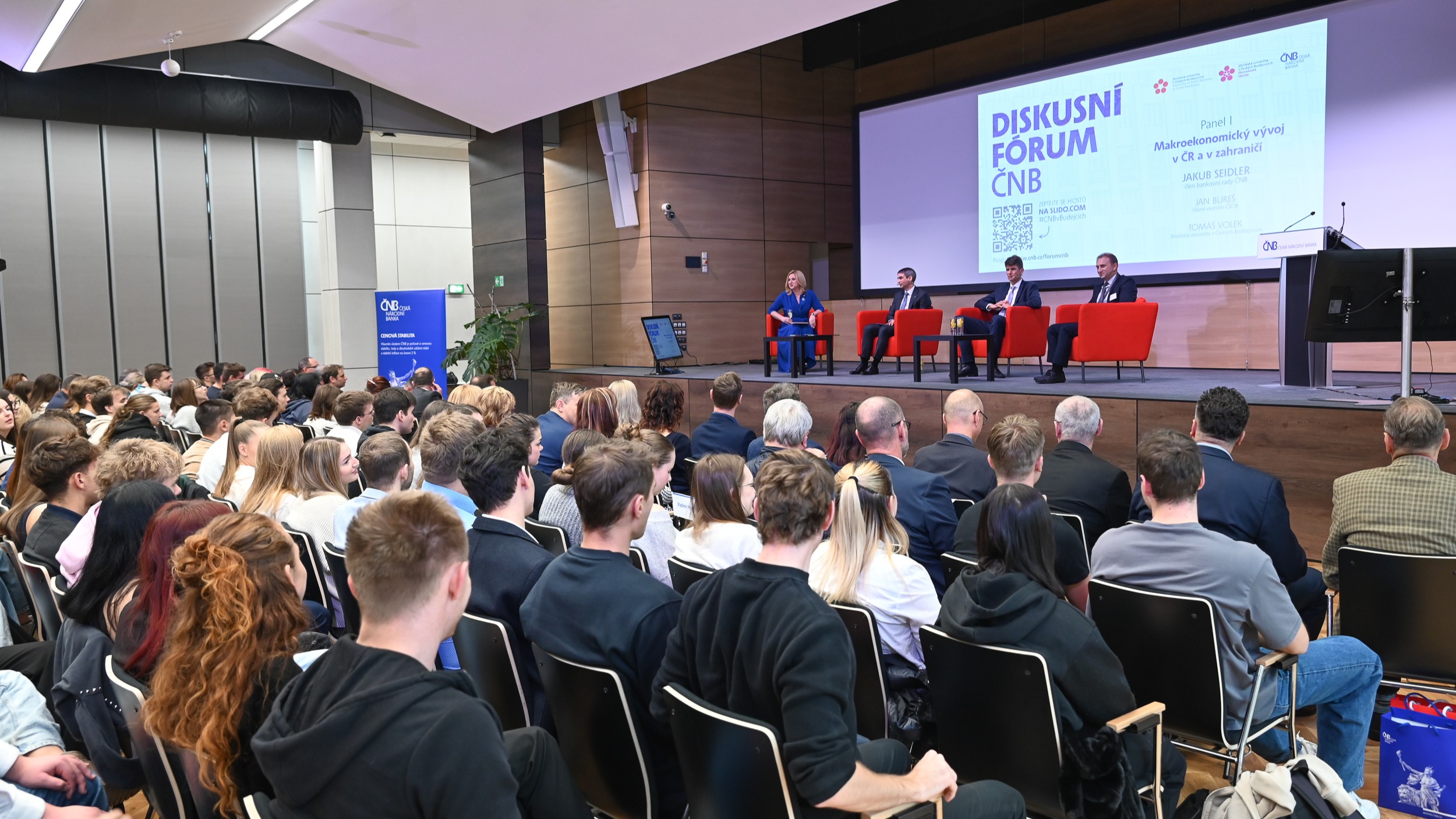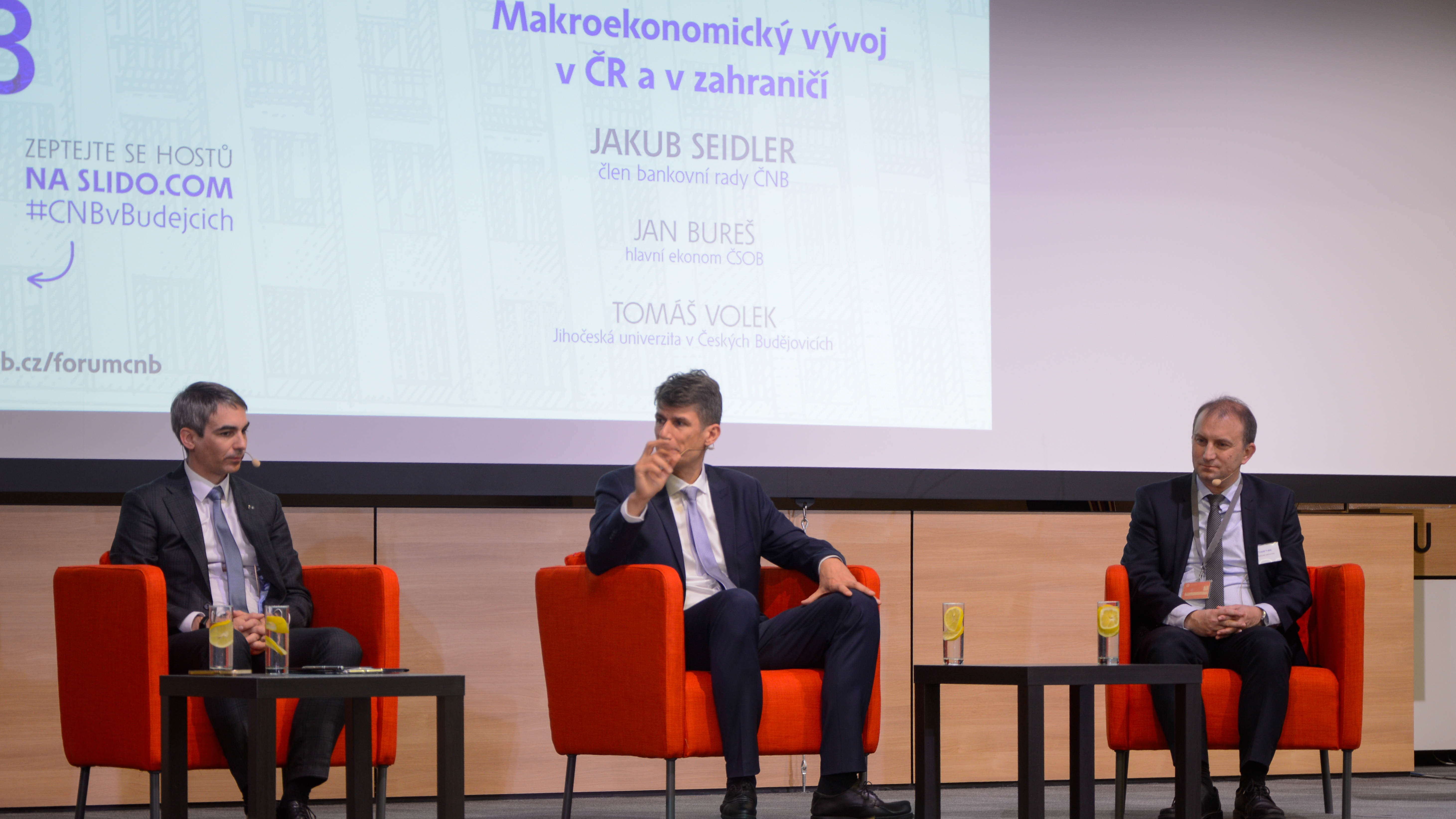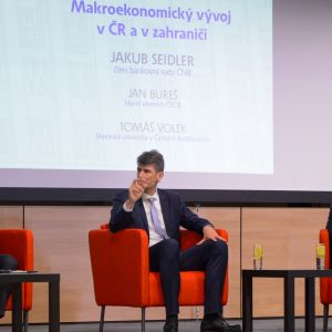Debata byla rozdělena do dvou tematických bloků. První panel, nesoucí název Makroekonomický vývoj v ČR a v zahraničí, člen bankovní rady Jakub Seidler spolu s hlavním ekonomem ČSOB Janem Burešem a Tomášem Volkem z Ekonomické fakulty Jihočeské univerzity diskutovali o aktuální ekonomické situaci. Jakub Seidler upozornil na nadále zvýšenou inflaci ve službách. Právě ta je jedním z hlavních důvodů, proč bankovní rada ČNB drží již nějaký čas úrokové sazby beze změny.