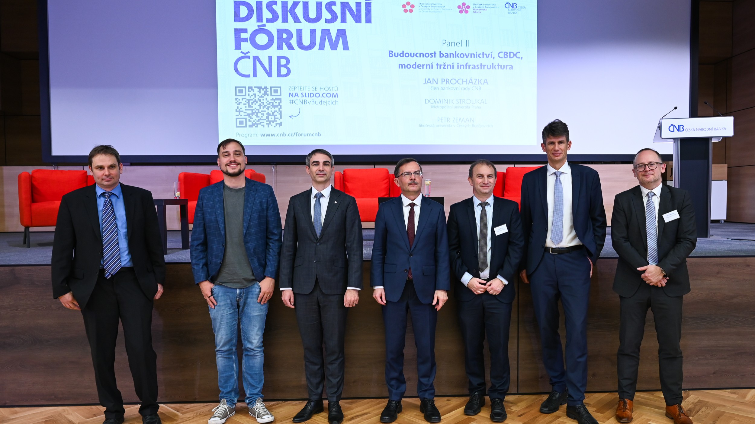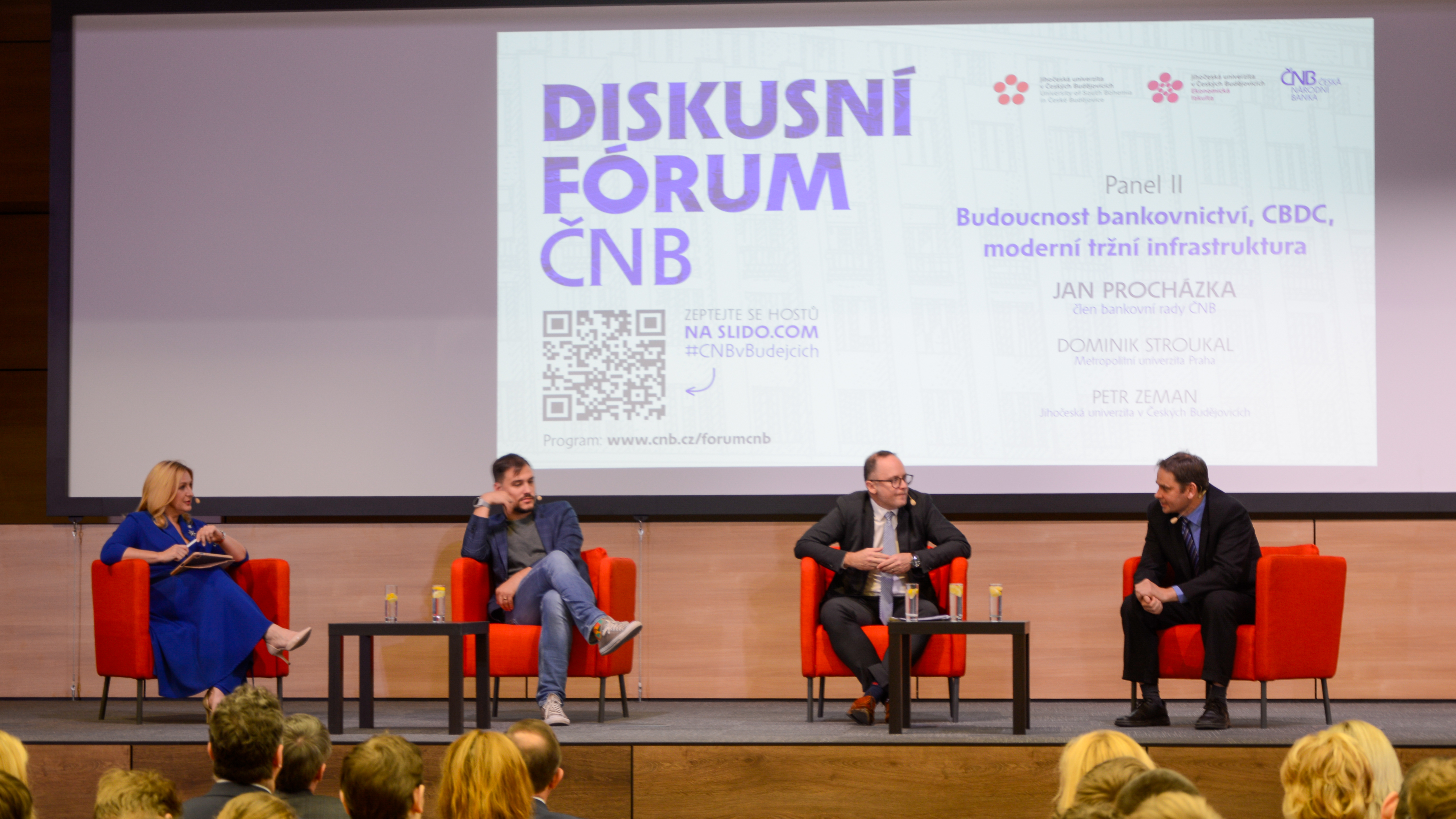 V druhém bloku s názvem Budoucnost bankovnictví, CBDC a moderní tržní infrastruktura otevřel člen bankovní rady Jan Procházka spolu s Dominikem Stroukalem z Metropolitní univerzity Praha a Petrem Zemanem z Ekonomické fakulty Jihočeské univerzity téma digitalizace bankovnictví či budoucí roli digitálních měn centrálních bank. Řeč byla také o okamžitých platbách, jejichž popularita v Česku mezi lidmi i firmami neustále roste. otázky digitalizace plateb, možností digitální měny centrální banky i vývoje finančních technologií.